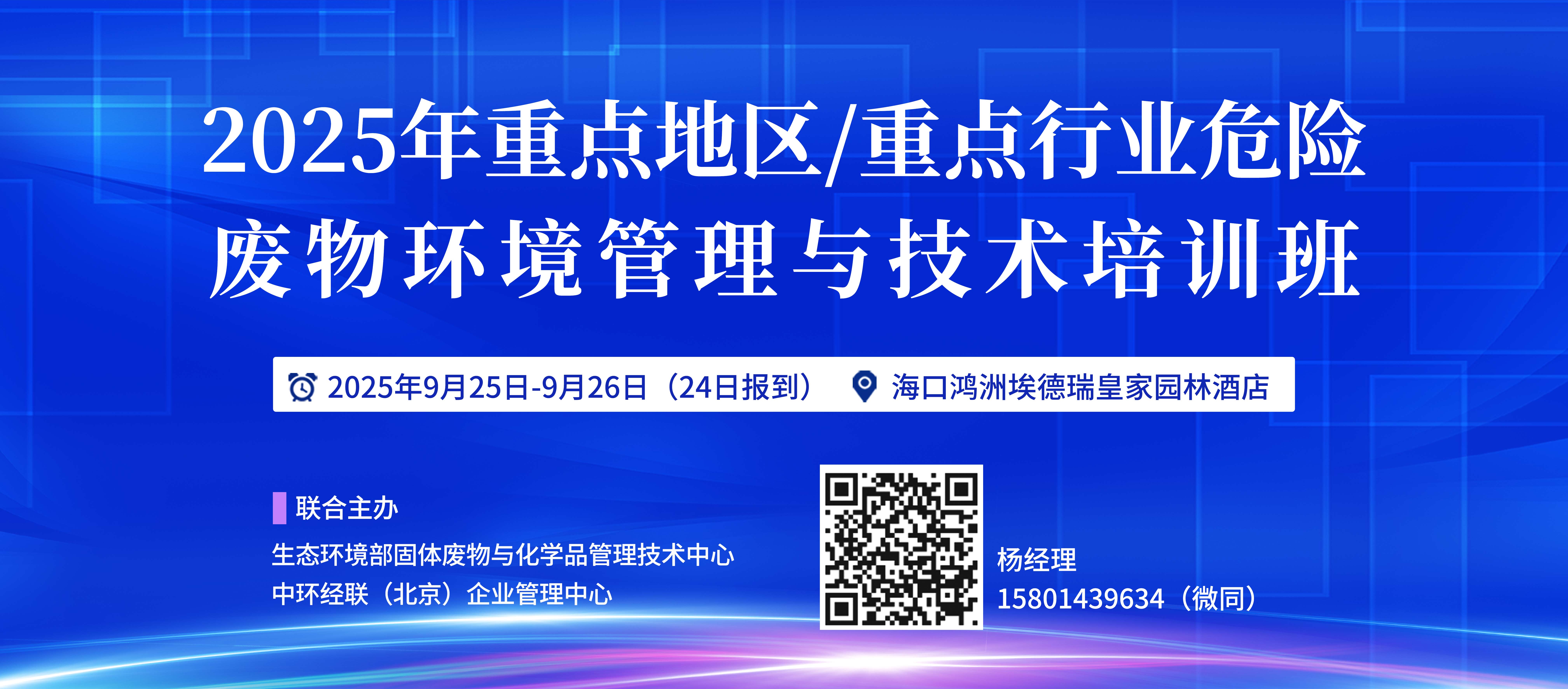 • 【9月·海口】2025年重點(diǎn)地區(qū)/重點(diǎn)行業(yè)危險廢物環(huán)境管理與技術(shù)培訓(xùn)班 重磅來襲!